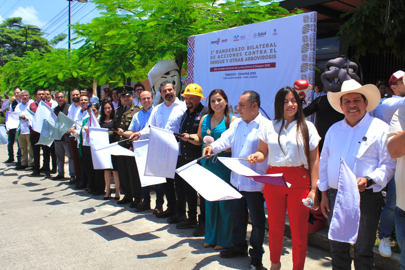 Con el objetivo de disminuir la incidencia de enfermedades transmitibles por vector, los secretarios de Salud de Tabasco, Alejandro Calderón Alipi y de Chiapas, Omar Gómez Cruz, encabezaron el Segundo Banderazo Bilateral de Acciones Intensivas contra el Dengue y otras Arbovirosis, con lo que se refrendó el compromiso de los gobernadores de Tabasco, Javier May Rodríguez y de Chiapas, Eduardo Ramírez Aguilar, de fortalecer la cooperación entre ambas entidades para proteger la salud de la población fronteriza.