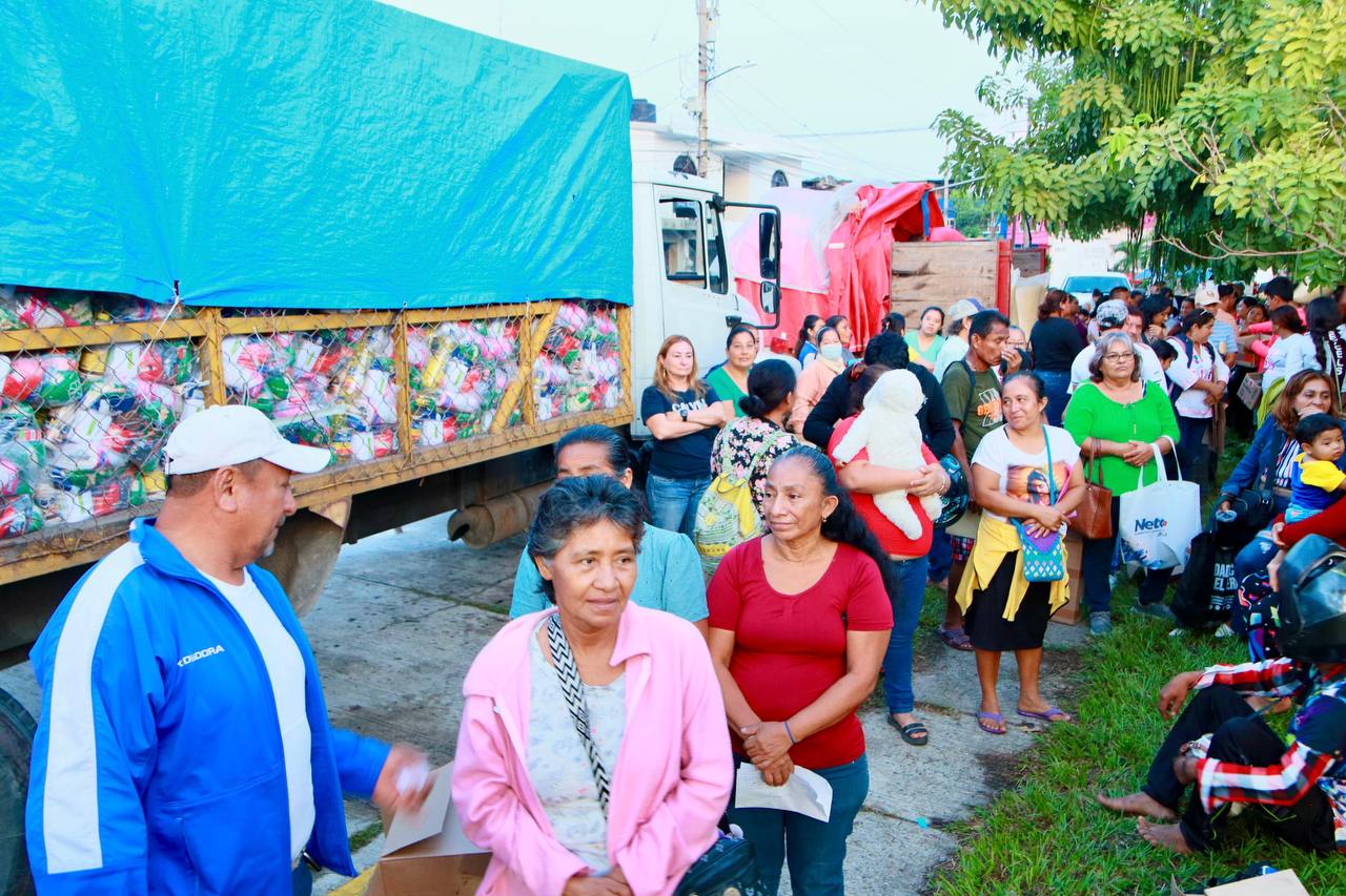 Durante la actividad se ofrecieron despensas a bajo costo y productos de la canasta básica a precios accesibles, entre ellos maíz, huevo y carne.